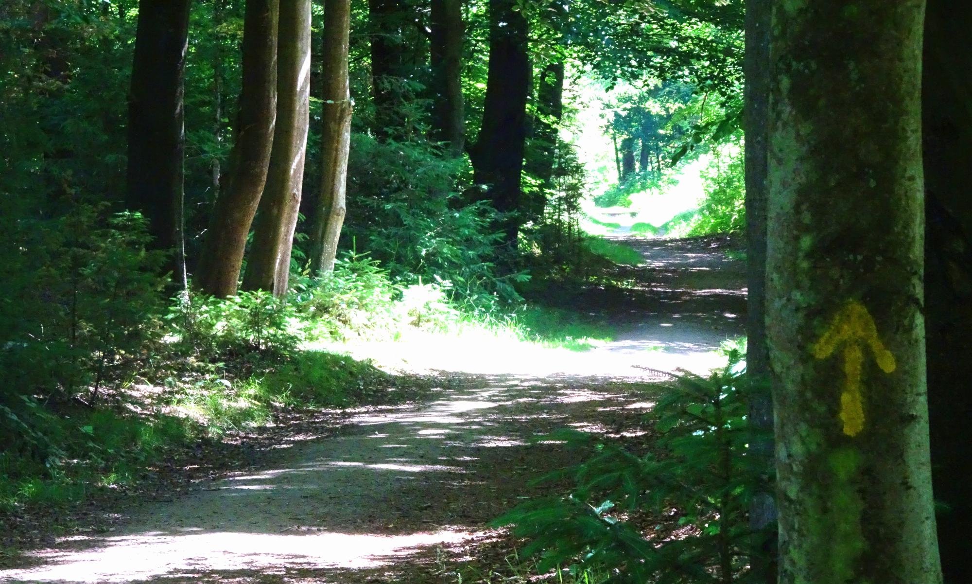 Der heutige Tag auf dem Münchner Jakobsweg begann etwas beschwerlich. Erst mussten die Pilger hinunter ins Tal zum Schlittbach. Nach dessen Überquerung ging es dann leider gleich wieder den Berg hinauf. Wir haben es sportlich genommen und als Aufwärmübung verstanden für das, was noch kommen sollte.