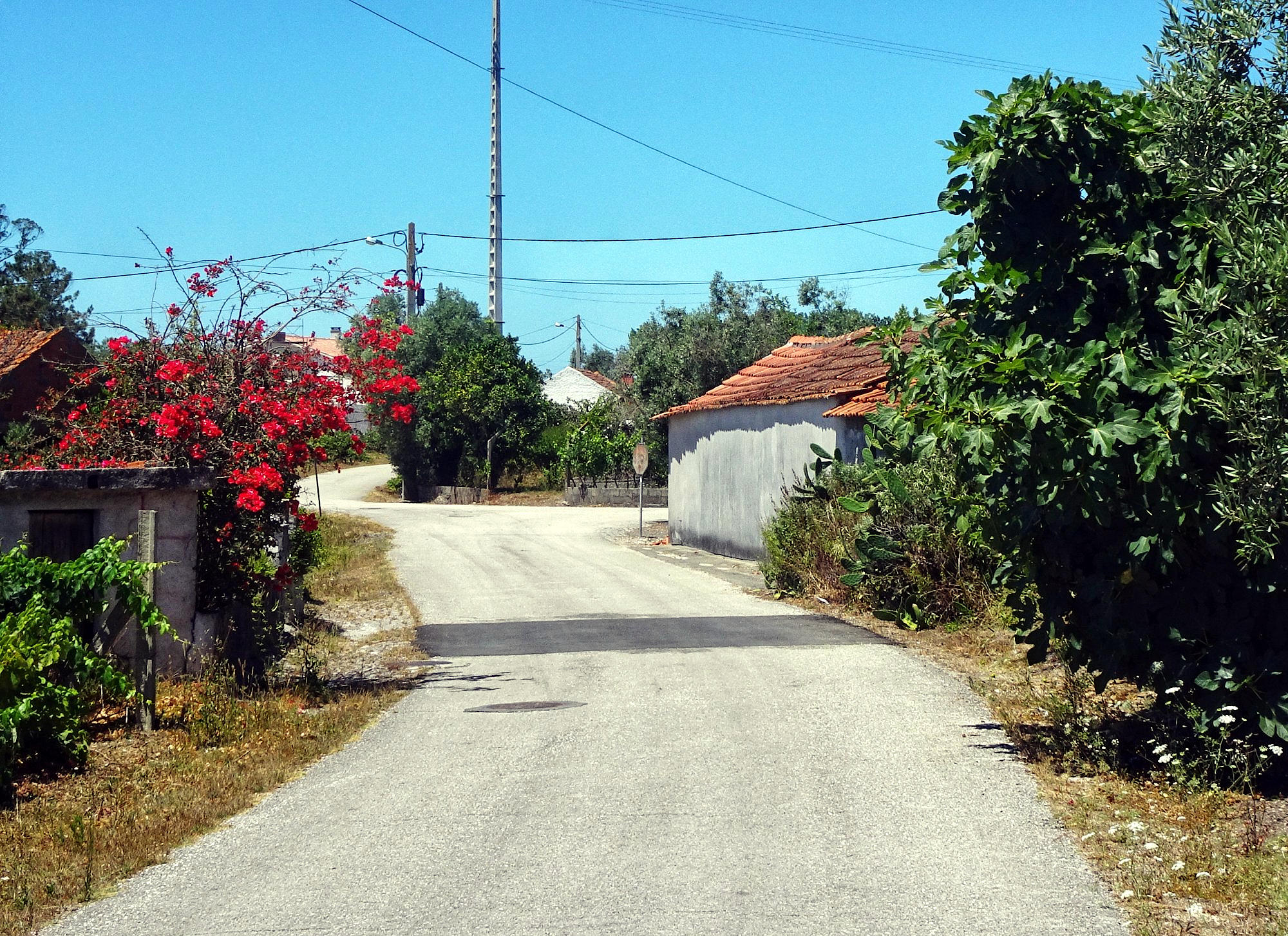 Erstes Ziel war das nette Dörfchen Amor (Was ein schöner Name!). Hier erzählten mir zwei Hausfrauen die Geschichte von Dom Dinis, dem die Wasserstelle bei der Kirche geweiht ist. Über schöne Waldwege führte der Caminho nach Monte Real. Das sehr verspätete Mittagessen war sehr notwendig und hat gemundet. In einem noch richtigen Tante-Emma-Laden konnte ich alles finden für das Picknick am Abend am Pool.