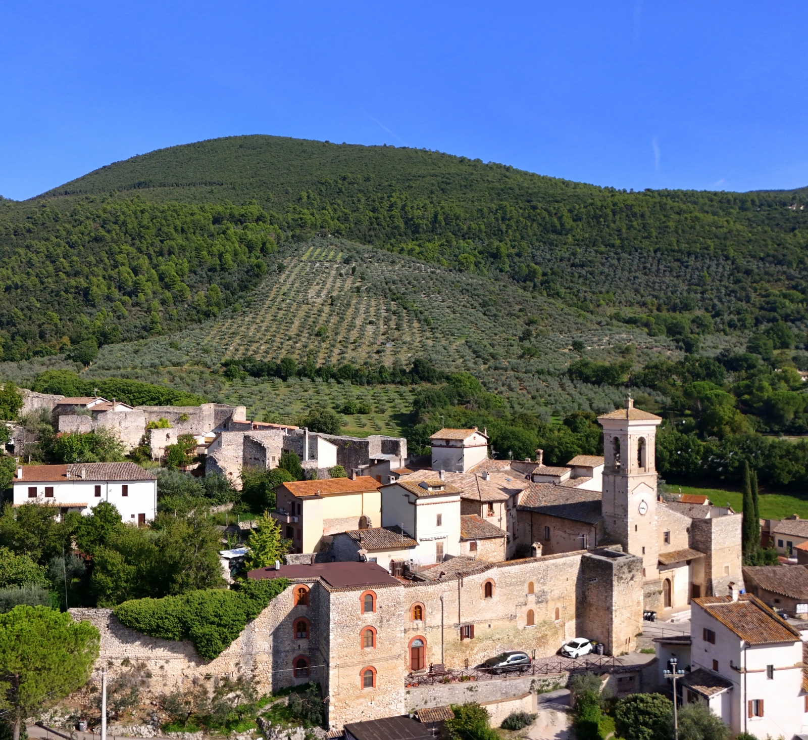 Zum Tageseinstieg wartet zuerst einmal ein längerer Abstieg auf guten Waldwegen hinunter Richtung Spoleto. Über eine imposante Römerbrücke, die schon Goethe beeindruckte, betreten die Pilgerinnen Spoleto. Nach einer Besichtigung der wunderschönen Basilika San Salvatore geht es wieder aus der Stadt hinaus. In Eggi lohn der Besuch der Dorfkirche, die dem Erzengel Michael geweiht ist und mit vielen Fresken begeistert. Durch einige Dörfer geht es bis zum Etappenziel Lenano.